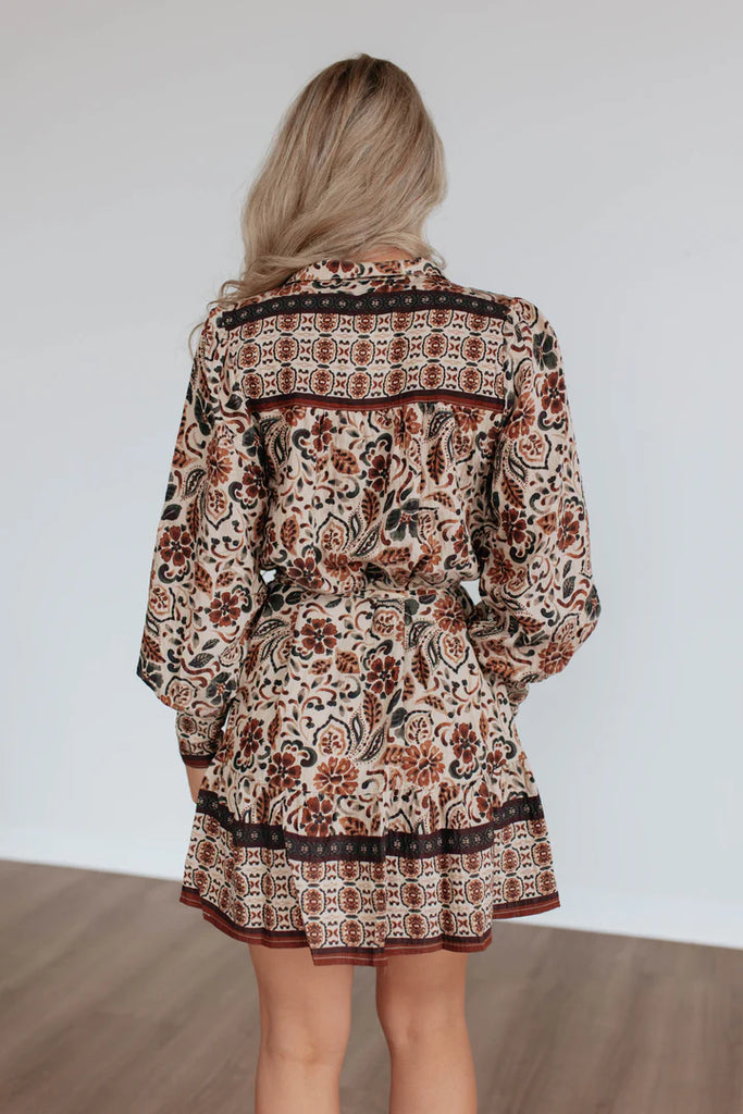 Long-Sleeve Paisley Shirt Dress